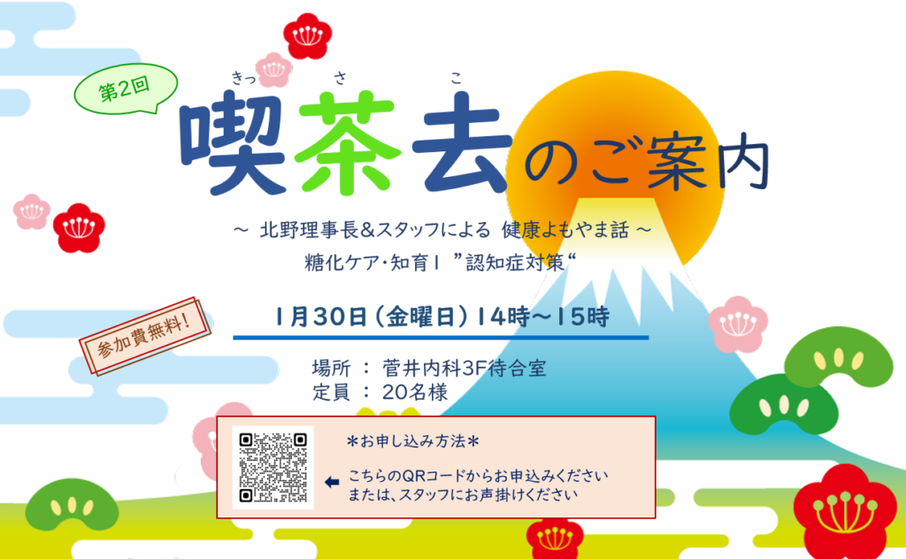 この度、菅井内科では大変好評いただきました「喫茶去」の第2回を開催いたします。