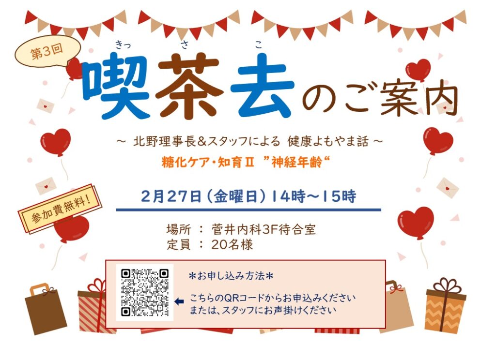 この度、菅井内科では大変好評いただいております「喫茶去」の第3回を開催いたします。